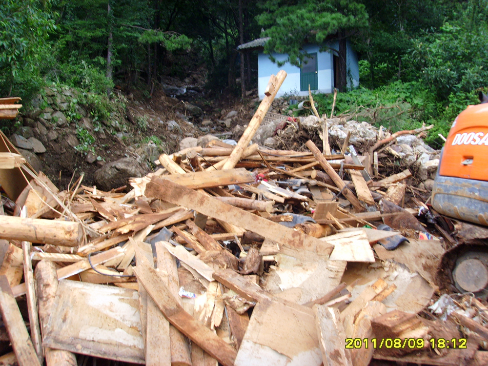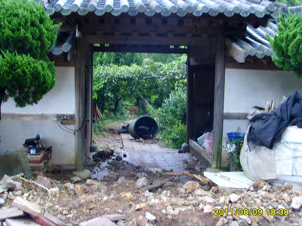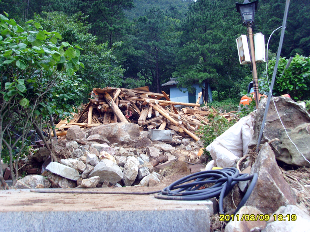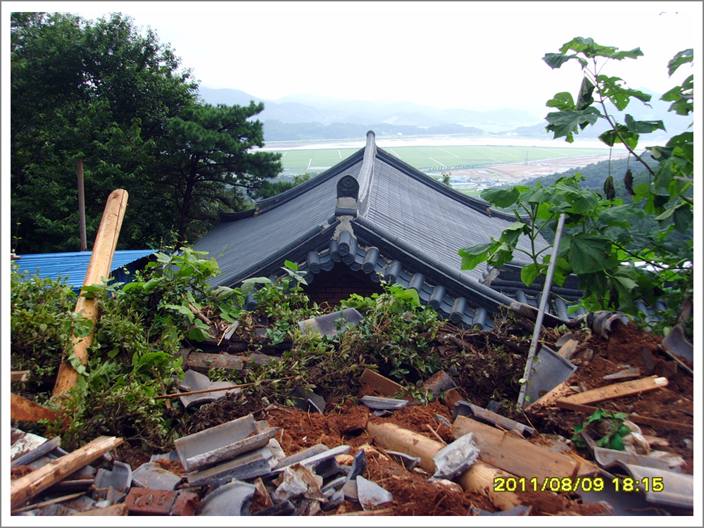 ¹ý´ç ¿À¸¥ÂÊ °¡ÆÄ¸¥ »ê ¾à 250 ¹ÌÅÍ À§¿¡¼­ °í¶ûÀ» µû¶ó ¹ÙÀ§¿Í Èë°ú Ä¿´Ù¶õ ¼Ò³ª¹« µîÀÌ ¼ø½Ä°£¿¡ ¹Ð·Á¿Í ¹° °í¶ûÀ» ¸·¾Ò°í, ¹ÙÀ§, Èë, ³ª¹«°¡ ¾à 23Æò ¸ñÁ¶¹ý´ç À§ÂÊÀ» ¹Ð°í µé¾î¿Í ¹ý´çÀÌ ¿ÏÀüÈ÷ ºØ±« µÇ¾ú½À´Ï´Ù.